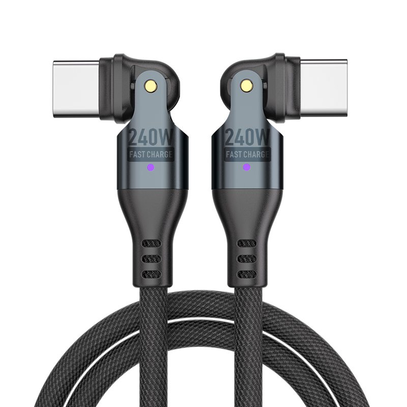 This 240W Type-C charging cable is an outstanding high-performance tool. Boasting a massive 240W fast charging power, it can rapidly juice up mobile phones, tablets, game consoles and laptops. Its 180° adjustable design, a combination of L-shape and straight shape, adapts to diverse charging scenarios. Tough and durable nylon braid material makes it resistant to tangles. With a built-in smart chip for stable power. Equipped with LED indicator for convenient night charging. Supports charging and data transmission, widely compatible. Fashionable black.