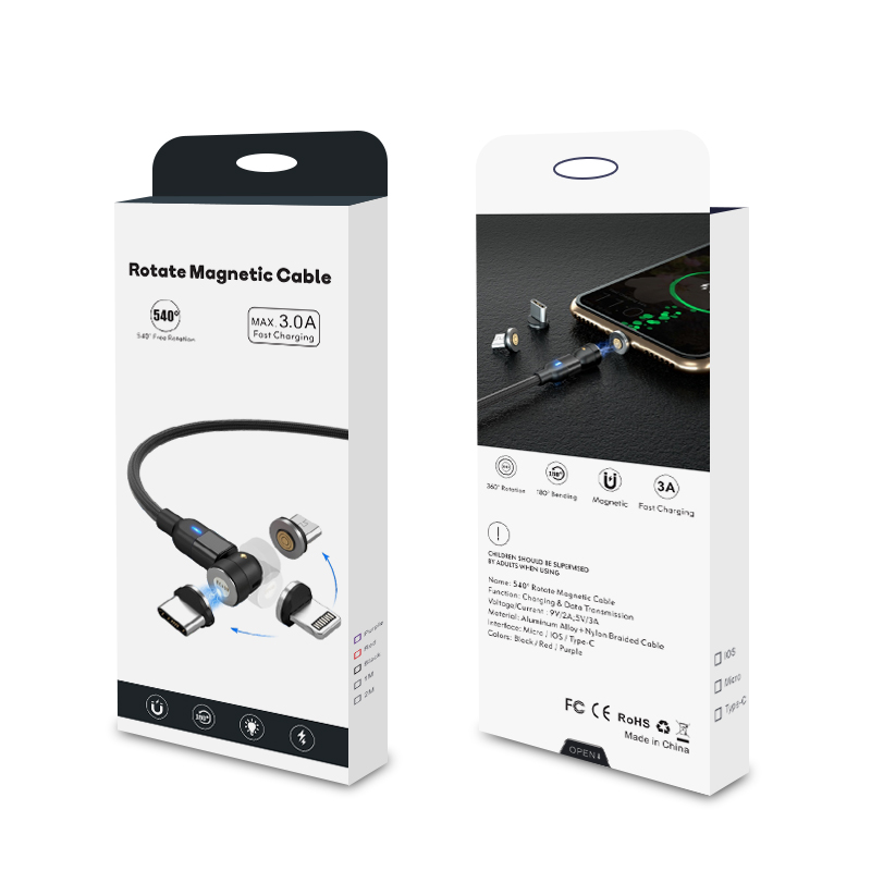 540 Magnetic data cable support 3A fast charge and data transfer Black/Purple/Red/customized colors 1M/2M/3M/customized length