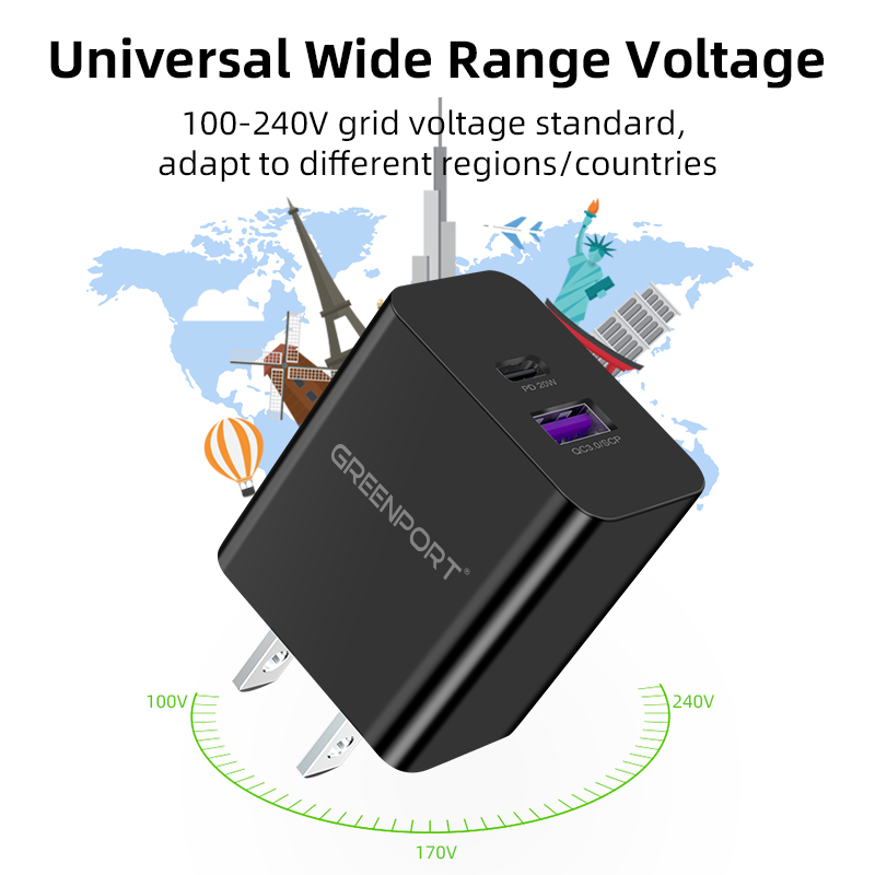 Support PD20W & QC 3.0 USB 3A fast charge with CE, FCC, RoHS certificates